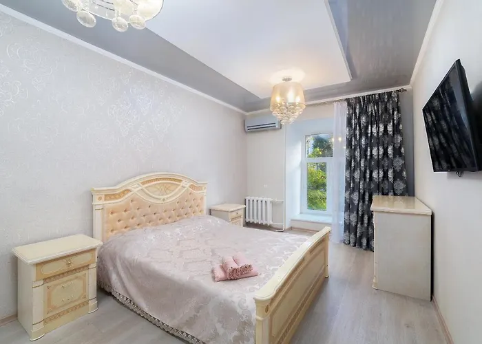 Το διαμέρισμα Deribasovskaya 54 μ^2, που βρίσκεται στην περιοχή Primorsky δίπλα σε Θέατρο Όπερας και Μπαλέτου της Οδησσού, φιλοξενεί έως 6 άτομα. Οι επισκέπτες θα εκτιμήσουν υποαλλεργικά δωμάτια και χώρο στάθμευσης καθώς και υπηρεσία μεταφοράς από/προς αεροδρόμιο, 24ωρη ρεσεψιόν και υπηρεσία καθαρισμού δωματίου.